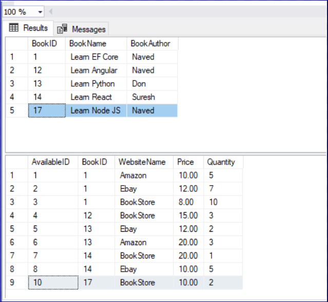 In this tutorial we will learn to code with One to one relationship. In our project consider SQL tables BookAvailability and MyBookTable are connected to each other. Meaning, we are storing the availability of books in the market using the BookAvailability table. So we will use Book_ID as foreign key in the BookAvailability table and establish a one to one relationship between these 2 tables.