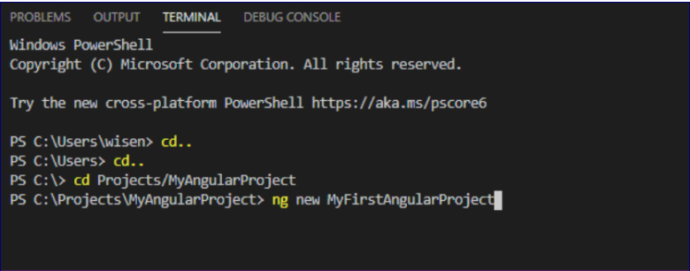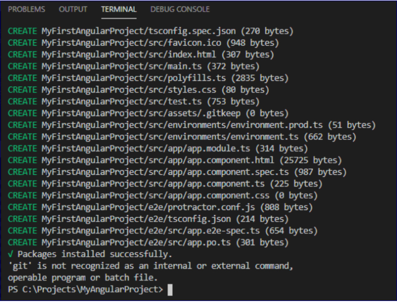 Once you navigate to the project folder in the terminal, you have execute npm command to create a new angular application for you. Write below command and press Enter