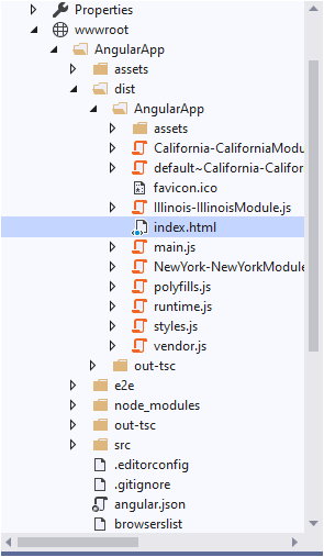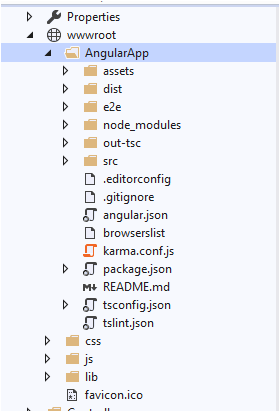 Once the AngularApp is created inside wwwroot, copy the angular application contents to this folder.