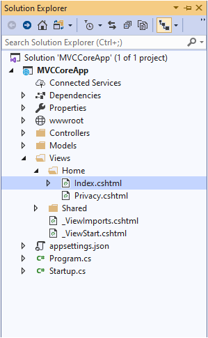 Let’s create a new MVC solution using Visual Studio 2019. The project structure looks like below.