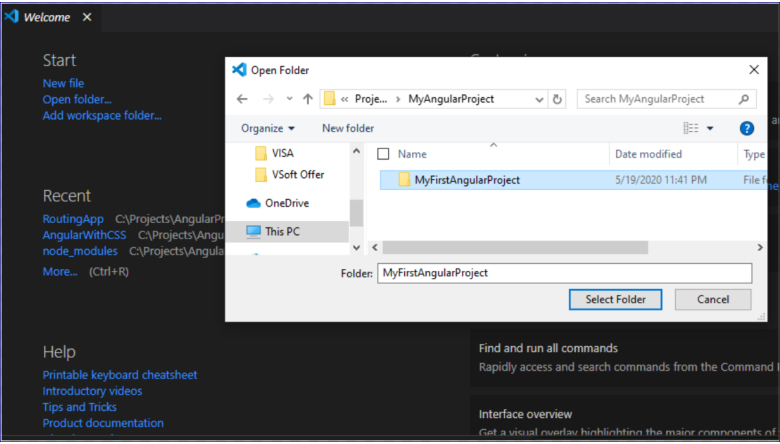 To open the Angular project which we created in our project folder please follow below steps: